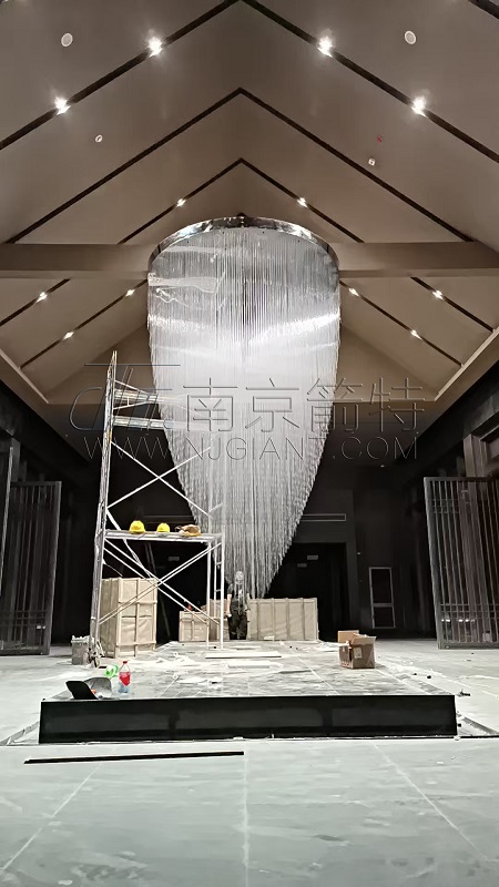 近日,箭特科技在浙江绍兴安装了一款极具文化冲击力的设计产品——一款以中国传统毛笔尖为造型的艺术光纤吊灯,巧妙地将现代光学技术与古越文化底蕴融为一体。